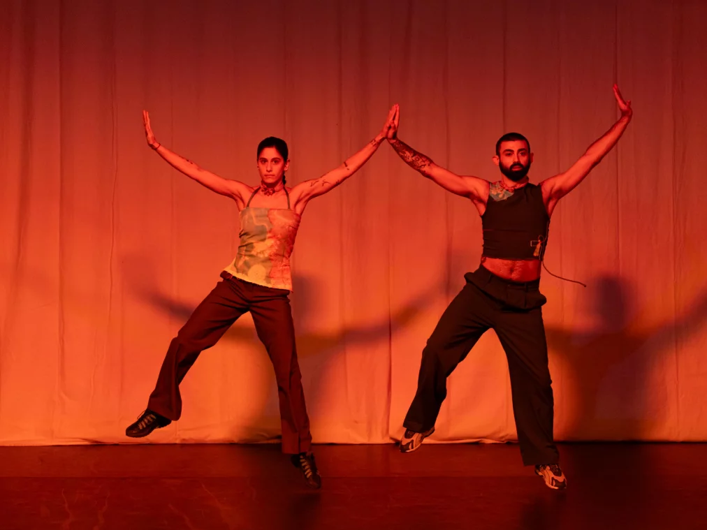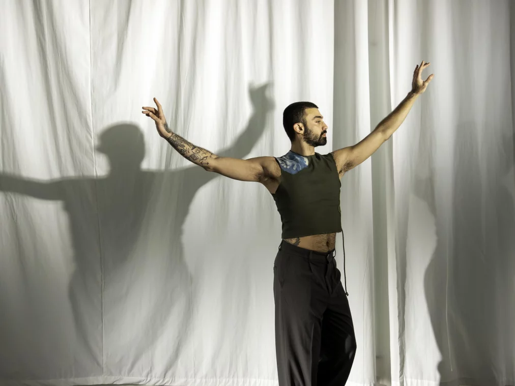 the intimacy of collision beschäftigt sich mit der orientalistischen Ästhetik von Repräsentation. Mit Fokus auf Form und Rhythmus dekonstruiert das Werk „nahöstliche“ Volkstänze und bringt sie in einen Dialog mit zeitgenössischem Bewegungsvokabular. Auf diese Weise formt das Stück einen tanzenden Körper, der orientalistische Vorstellungswelten ins Wanken bringt und aufbricht. Drei Performer*innen greifen auf die rhythmischen Strukturen des Dabke und die zyklischen Wiederholungen des Baladi zurück und schaffen so einen Tanz, der zwischen Wut und Feierlichkeit oszilliert.